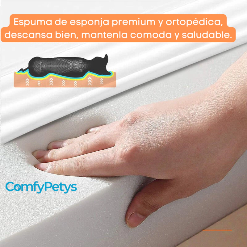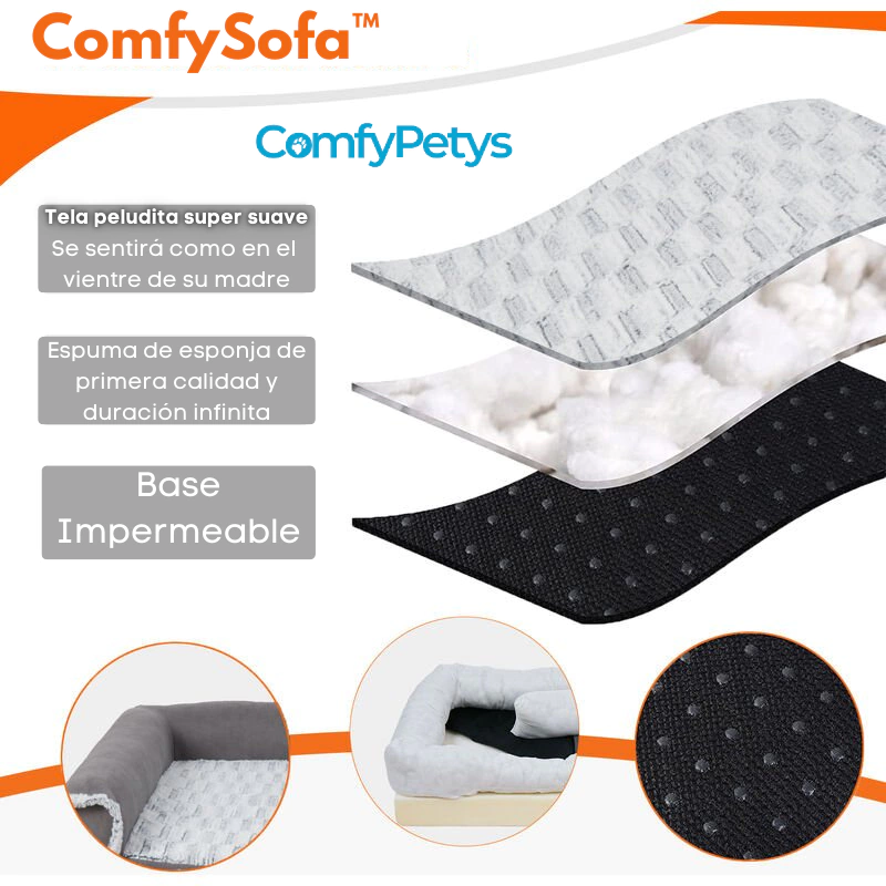 Descubre el ComfySofa™, el sofá ortopédico más solicitado del mercado. Con su base de espuma CertiPUR-ES™ y refuerzos en forma de L, brinda el máximo confort y soporte a tu mascota. Su funda lavable a máquina y su diseño de tres capas lo convierten en la elección perfecta para su comodidad duradera.