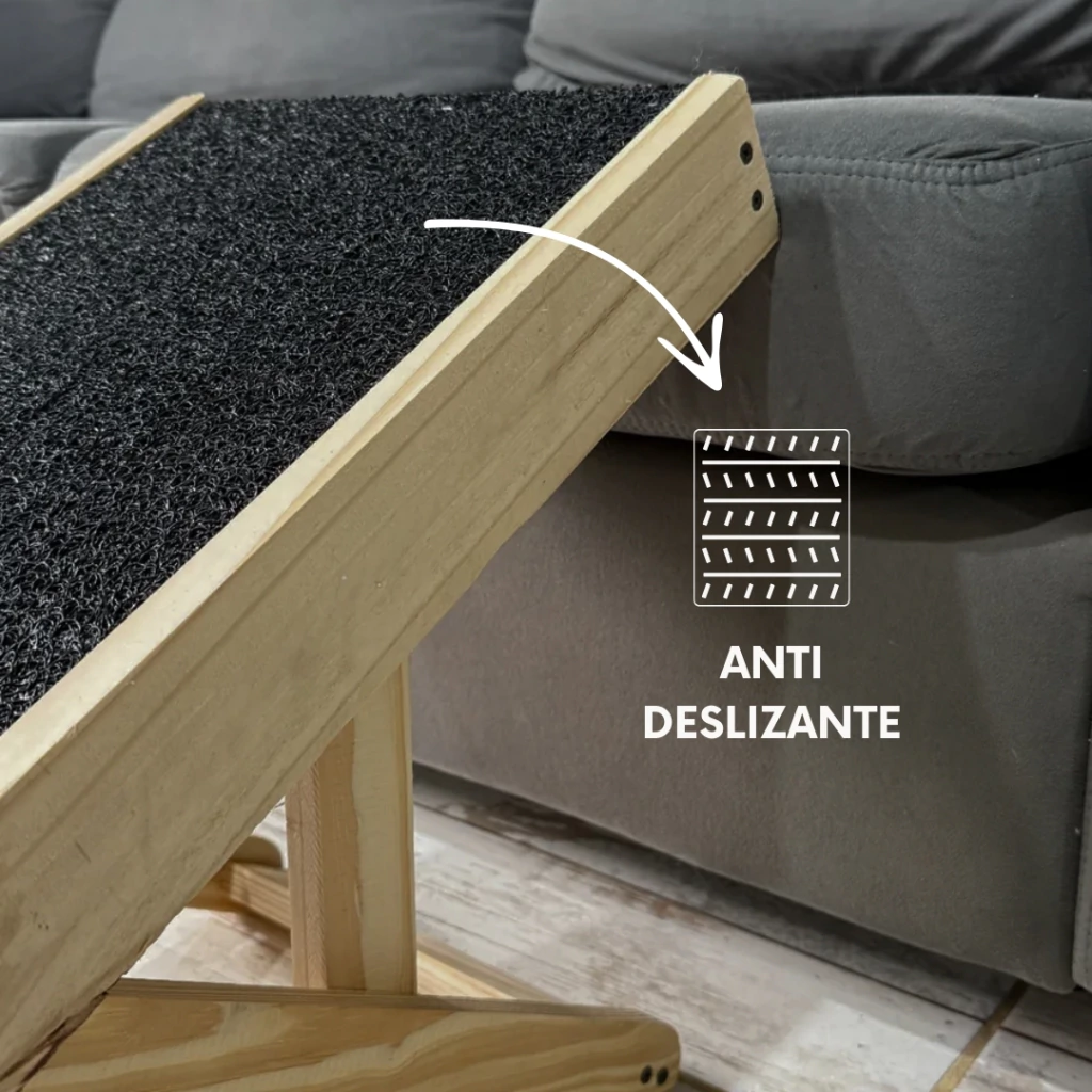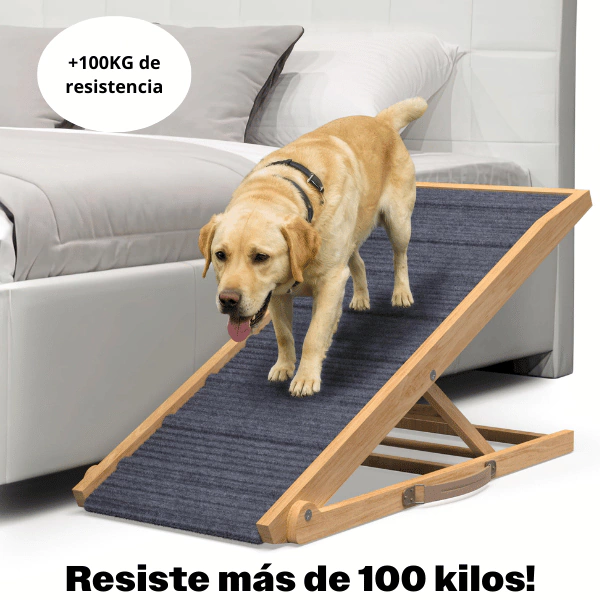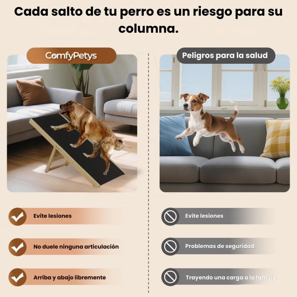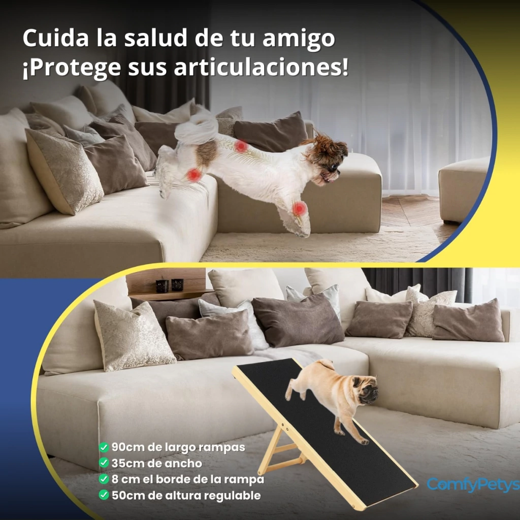 La ComfyRamp™ de ComfyPetys es la solución ideal para cuidar la salud y el confort de tu mascota. RESISTE HASTA MÁS DE 100KG! Diseñada especialmente para prevenir lesiones y evitar el esfuerzo al subir o bajar de camas, sillones, sofás y hasta el auto, su uso es recomendado por veterinarios para mascotas con problemas articulares, sobrepeso o edad avanzada.